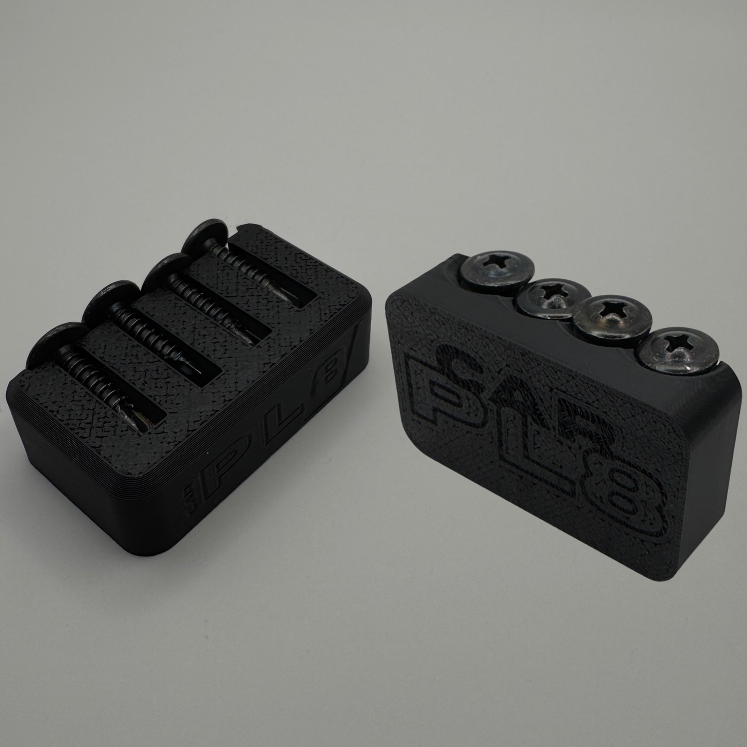 Mit deinen neuen PL8-Halterungen erhältst du ein komplettes Set für vorne und hinten. Beide Halter sind passgenau gefertigt und werden zusammen mit den selbstschneidenden Kennzeichenbohrschrauben geliefert – für eine stabile, dauerhafte Montage an beiden Fahrzeugseiten.